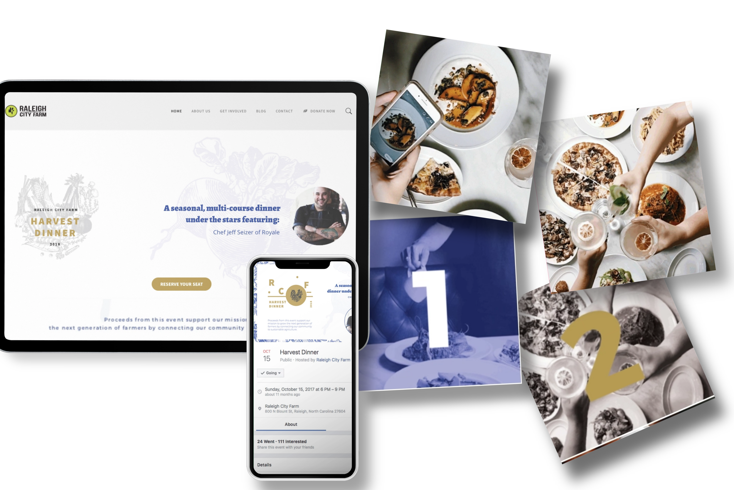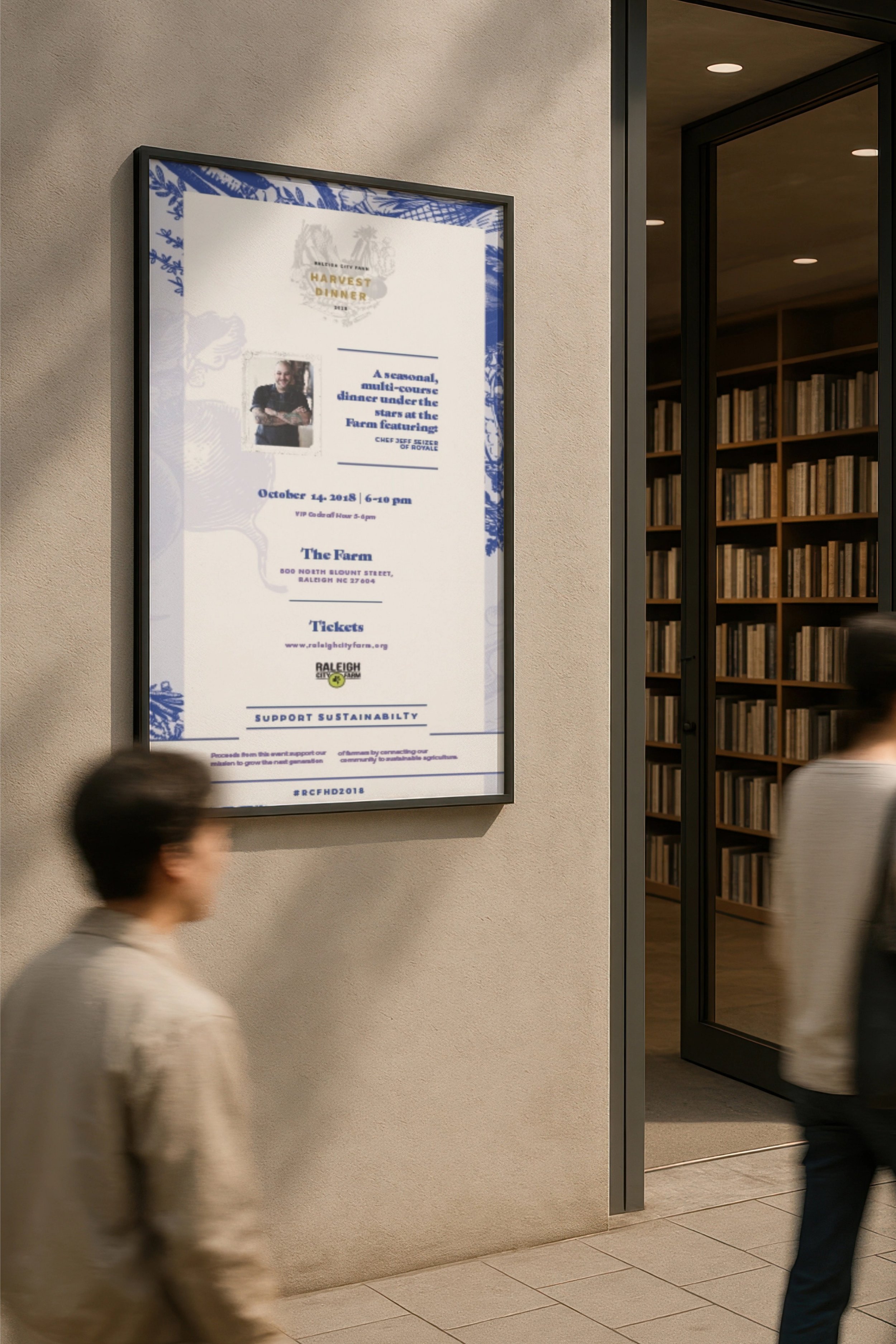 Because Raleigh City Farms was already an established organization, introducing a completely new visual identity each year would have weakened recognition, while repeating the same materials would have prevented the evening from feeling renewed. The project required a balance between variation and permanence.